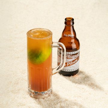 Cerveza, Clamato, Maggi, Worcestershire sauce, Tabasco, lime, celery salt